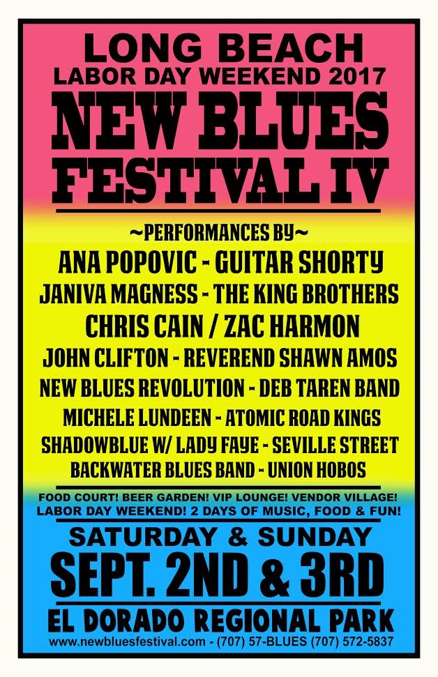 Other NBF IV headliners: Blues legend, Guitar Shorty; The King Brothers; Chris Cain; Zac Harmon (performing with Chris Cain); John Clifton; Reverend Shawn Amos; Atomic Road Kings; Backwater Blues Band; and Union Hobos.